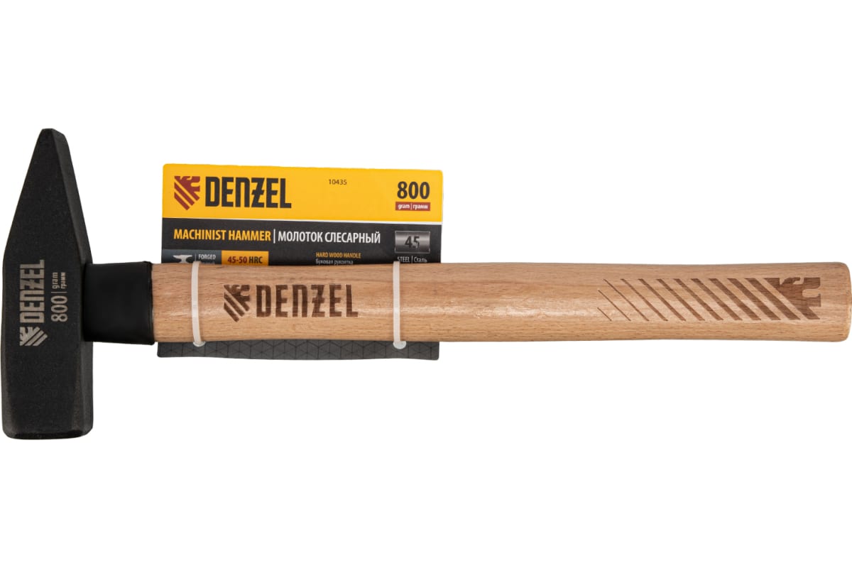 Молоток слесарный, 800 г, кованый квадратный боек, буковая рукоятка// Denzel