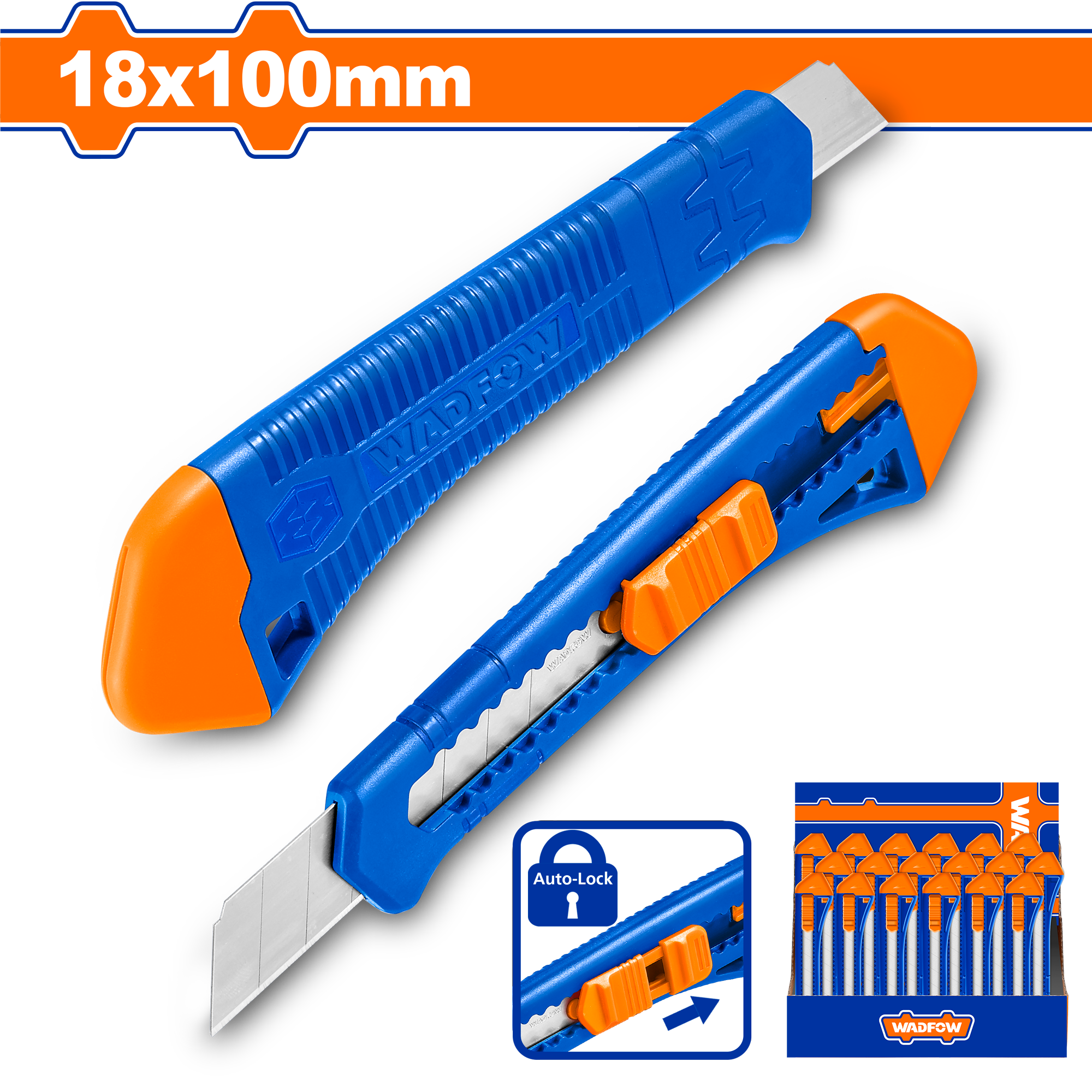 Нож 18мм строительный (18х100мм) (20/280) WADFOW WSK2913